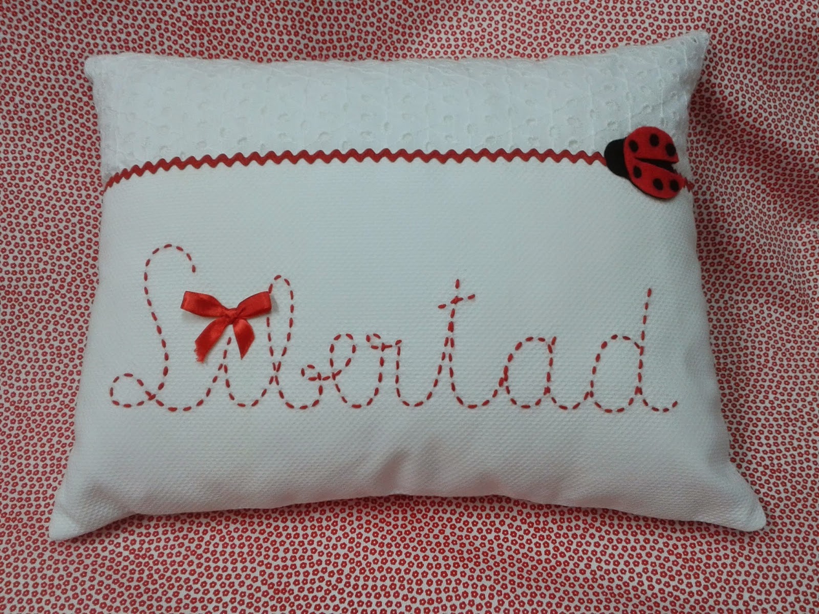 COJÍN TELA PERFORADA CON PIQUÉ Y MARIQUITA APROX. 35X45 18€
